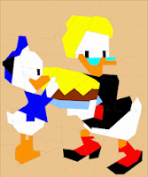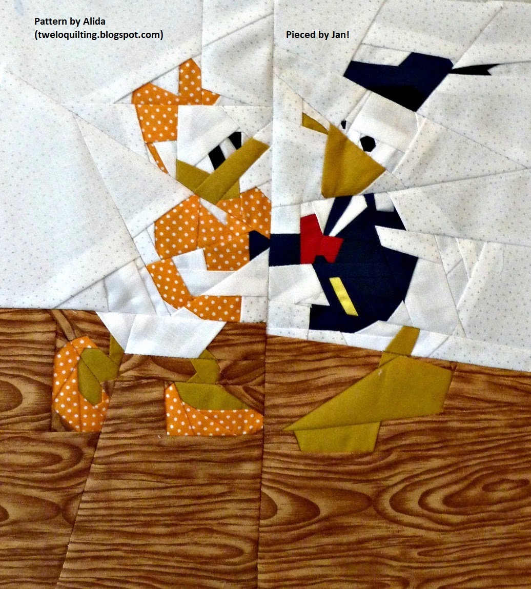 The idea of the full quilt is to try to reproduce set of blocks that form a comic strip. This is why I choose blocks in which each character is doing something. This makes the blocks more complex than simple "portraits" block, but complex does not mean difficult ;) complex just means that they are composed of many pieces, so they may require some time to be put together, but I think that that's worthy.