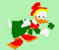 Topolino is an italian comic book that I used to read every week since I was 6. Even if Topolino means "Mickey Mouse" the comic book contains stories both from Mickey Mouse's friends (Minnie, Goofy, Pluto) and all Duck Tales characters (Donald Duck, Daisy, Scrooge and all the others). Since this is a quilt connected to my childhood, I have to call all the characters with the names I know them for (i.e. the italian one) :) however I also put the english name for reference :)