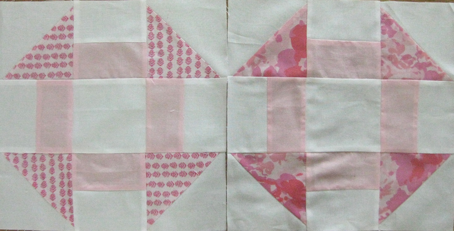 And I already used some of last week donation: I cut some of the fabric in 10 inches square and tried another of Jean's block from a video tutorial!