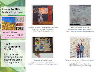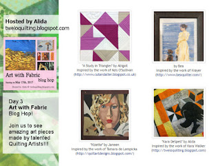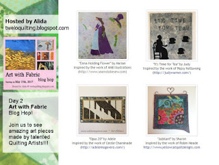I have been in touch with Adam because I asked his permission to reproduce one of his paintings as a mini for the AMB Tiny Quilt challenge (my quilt: Vincent) and we also exchanged art pieces when I made this mini quilt for his daughter (in exchange he sent me one of his wonderful paintings).