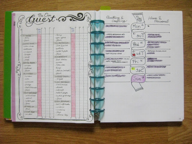 At the beginning of each week, I list few things in the "Quilting and Crafting" section or "Home and Personal" section. I put them in approximate days, but I don't stress about it, because I have the view of the full week, so if I feel that I want to do something on Mon that is listed on Fri (or viceversa) it's all good!!