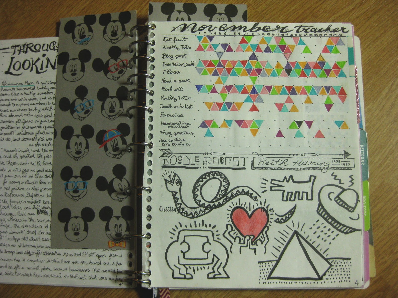 The handwriting one it is fun, but I don't have a desire to improve my handwriting (I think it looks fine when I write slowly) plus I don't want to think about what to write, I just want to write. So I initially changed it to "I will copy a piece of a song that I hear on the radio and I will practice different fonts"... while it was fun, again it didn't click. One day I was reading "How to think like Leonardo Da Vinci" and I read that he wrote "mirrored"... that's where it clicked: I can practice my mirrored writing one day (meaning writing with my right hand, but writing each letter mirrored and writing right to left) and the other day I can practice my non-dominant hand writing!! Oh, wow, now we have an interesting challenge! Are these pages ugly? You bet! Am I improving and learning funky new skills: yes indeed! :)