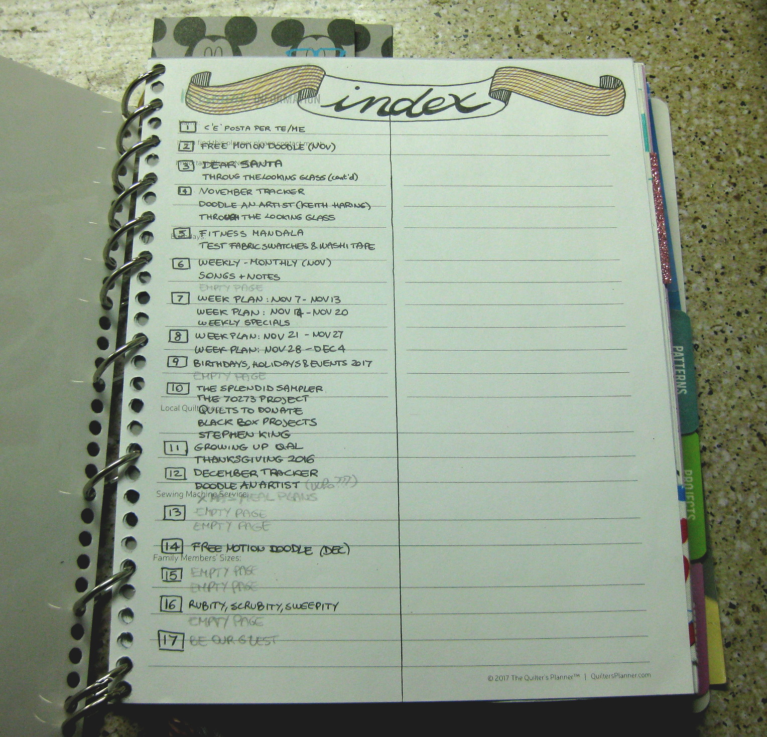 Here, instead, do I need a page for this week task? I create it, number it, put it back in the index. Now, do I need a page to plan my next three months? I create it (on my first empty page), number it, put it back in the index. Do I mess up a page? Oh well, I glue it and I don't put it back in the index :)