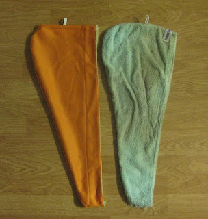 Now... I have been spending so much time and energy trying to find an alternative... why??? it is such as simple shape and I can sew!!! Sometimes I try to convince myself that it would be a "waste" to cut up a perfectly good towel to do this... but seriously isn't it a waste to have many towels that I don't use anyway??? sometimes I am so stubborn :) it took me maybe 15 minutes to stitch up the orange new version!!