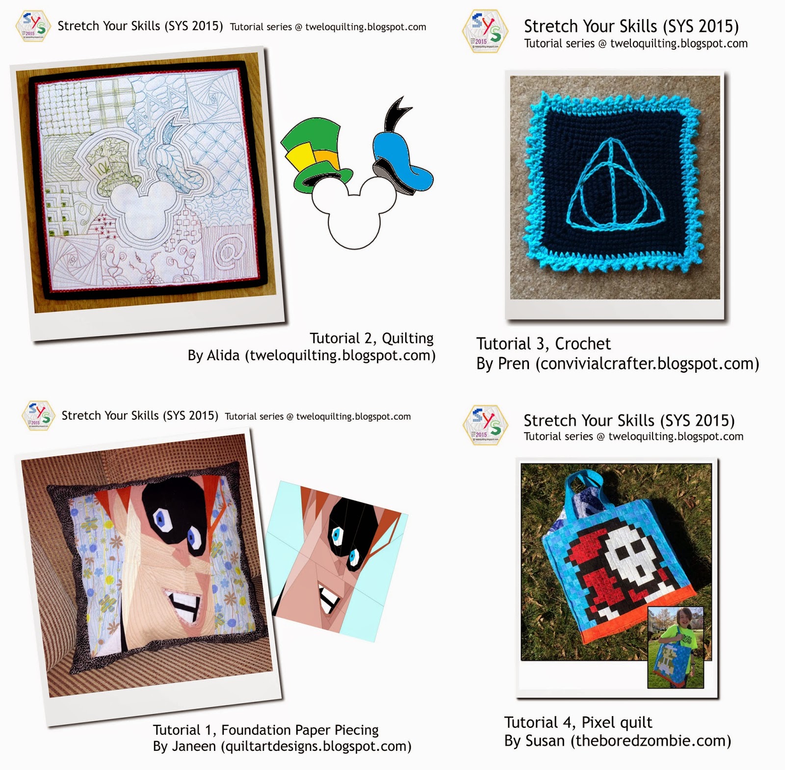 And my other recent endeavor is SYS 2015 (Stretch Your Skills): a monthly series of tutorials to practice in different crafts skills. Until now we had Foundation Paper Piecing, Quilting, Crochet and Pixel Quilt.